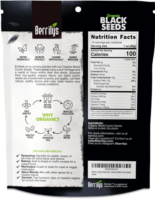 Black Cumin Seeds, Organic Nigella Sativa, 16oz | Kalonji Spice for Cooking & Baking | Superfood for Blood Sugar & Immune Support